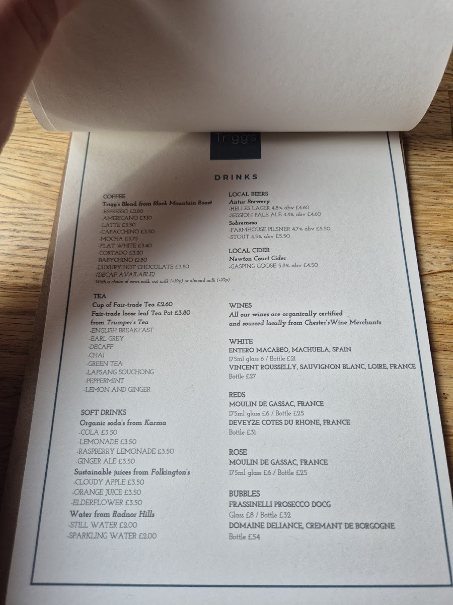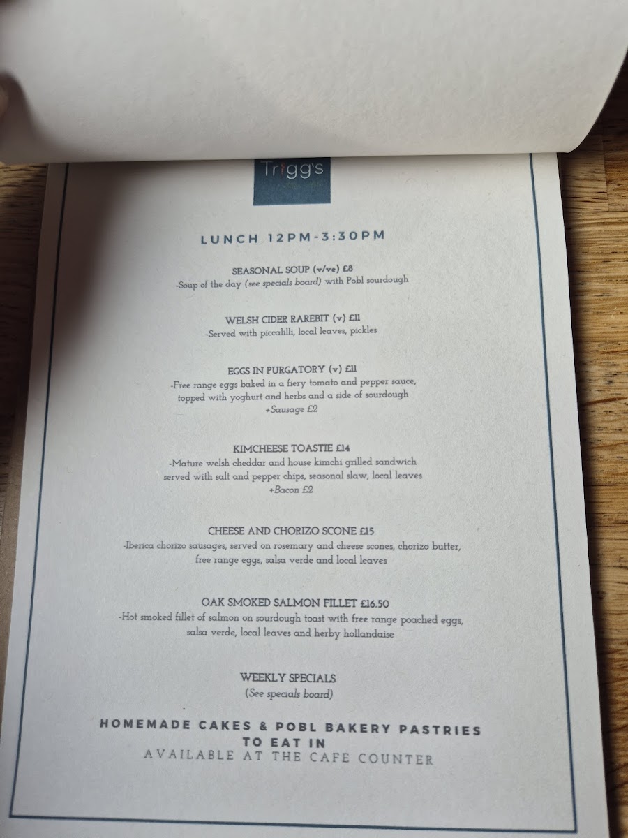 Trigg's At The Mill offers a delightful menu that reflects a perfect blend of traditional British comfort and light, contemporary fare. The English Breakfast is a standout dish, providing all the classics with quality ingredients that make it a satisfying choice to start your day. For those with a taste for something lighter yet luxurious, the Smoked Salmon is an excellent option, offering a delicate flavor that's both refreshing and indulgent. To accompany your meal, the Cappuccino is a must-try; rich and aromatic, it pairs wonderfully with both breakfast and lunch offerings. Whether you're stopping by for a hearty breakfast or a cozy lunch, Trigg's At The Mill excels in serving up hearty yet refined dishes that perfectly match the charming ambiance of its location.